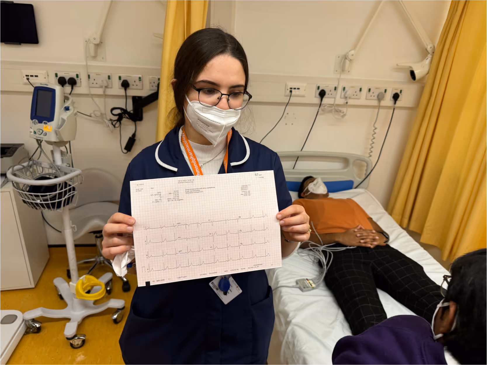 The kids engaged in a mock screening, deciding whether volunteers resembled snowmen or gingerbread men. This mimicked our routine clinical assessments, such as measuring heart signals, crucial in our research. This included measuring the electrical signal the heart makes.