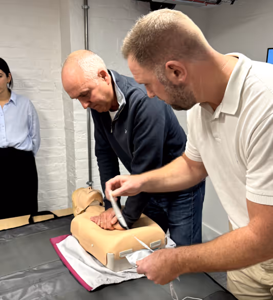 The training was led by Richmond’s Head of Acute Clinical Management, Carolina Pacheco De Amorim, who trained the group in chest compressions and the use of an AED (automated external defibrillator).